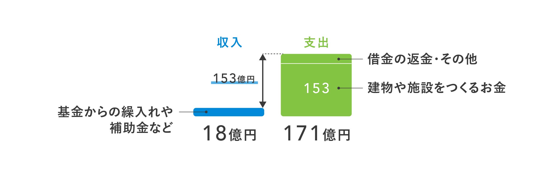 こちらは、収入18億円に対し、支出171億円となっており、153億円の不足となっています。